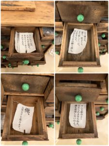 地下ギャラリーの片隅に…古びた小引き出し。その中に、あなたに寄り添ってくれる言葉があるかも…是非、こそっりと開けてください😌