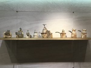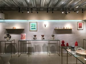 ウエダキヨアキ氏/最終日近くになると、器の作品を中心にお迎え頂いて展示作品が少なくなり…ギャラリーコレクションにウエダ氏のさを展示。