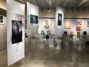 ギャラリー地下展示では、島内さん、首藤さん、鷹居さんコラボで創作された「掛軸」を展示(販売もしております)。