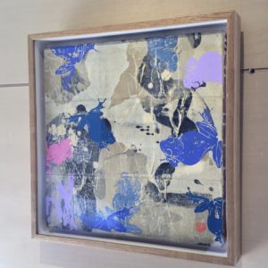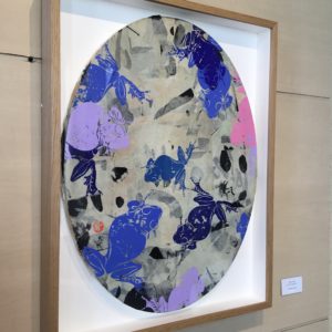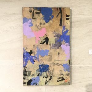・O氏とは…書道家の奥村氏/長年にわたり奥村氏より“反古紙”を頂き、キャンバスに貼り付けて、その上に描画をされております。墨と和紙と月蛙の描画とのSESSION をご高覧ください。